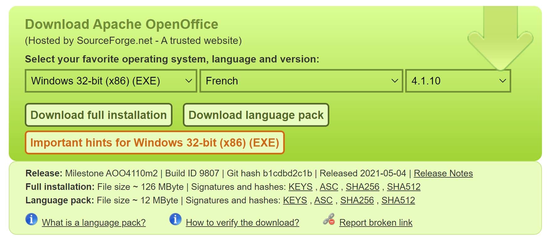 – Enfin, cliquez sur « Download full installation » et votre téléchargement commencera automatiquement.