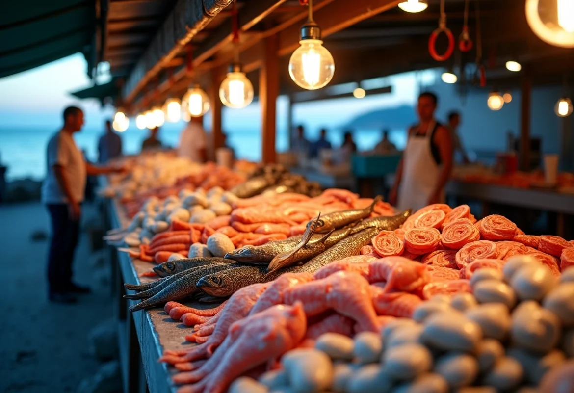 Les étals regorgent de poissons frais, pêchés dans les eaux locales. Bar, dorade, sole, ainsi que des espèces moins connues mais tout aussi savoureuses, sont disponibles. Les fruits de mer, tels que crevettes, langoustines et palourdes, sont aussi présents en abondance.